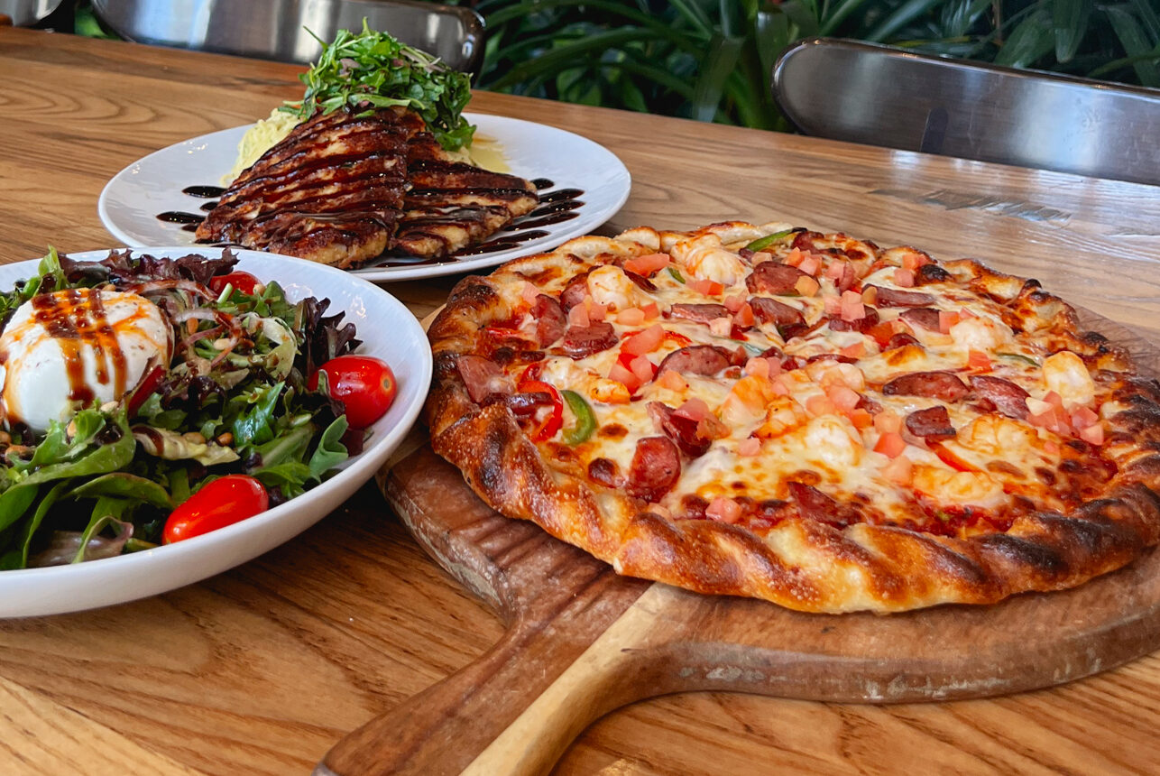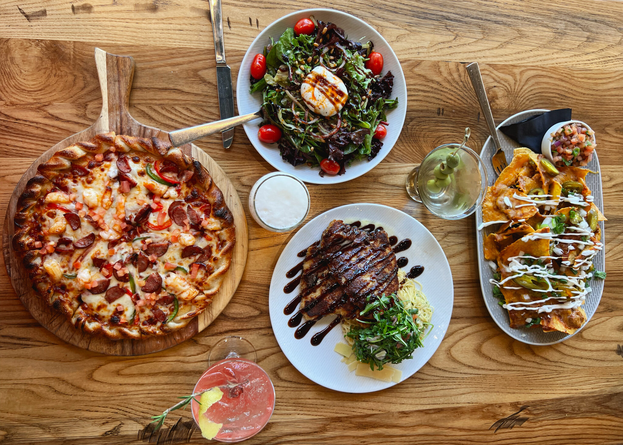 Spring mix greens, roasted pine nuts, heirloom tomatoes, red onion, sun dried tomato oil, white balsamic, fresh burrata cheese, balsamic glaze